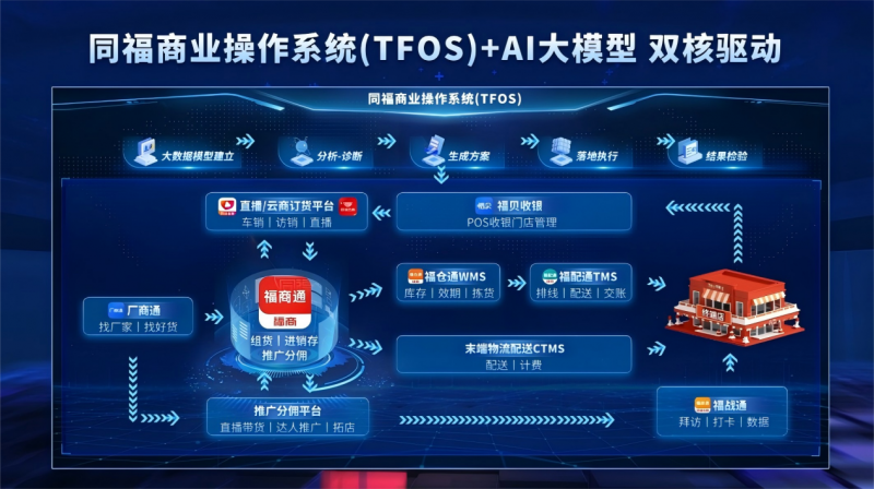 不同于传统电商平台,同福共享平台精准聚焦县域经销商转型与夫妻老婆店升级,通过批量集采订制降低厂商生产与推广成本,以统仓统配模式减少物流损耗,依靠大数据选品为终端店降低经营成本,最终实现县域商贸全链路成本下降的目标。同福云商、同福直播与线下爆品店联动,全面畅通“工业品下乡、农产品进城”的双向通道,真正实现多方共赢,为县域实体经济注入澎湃活力。